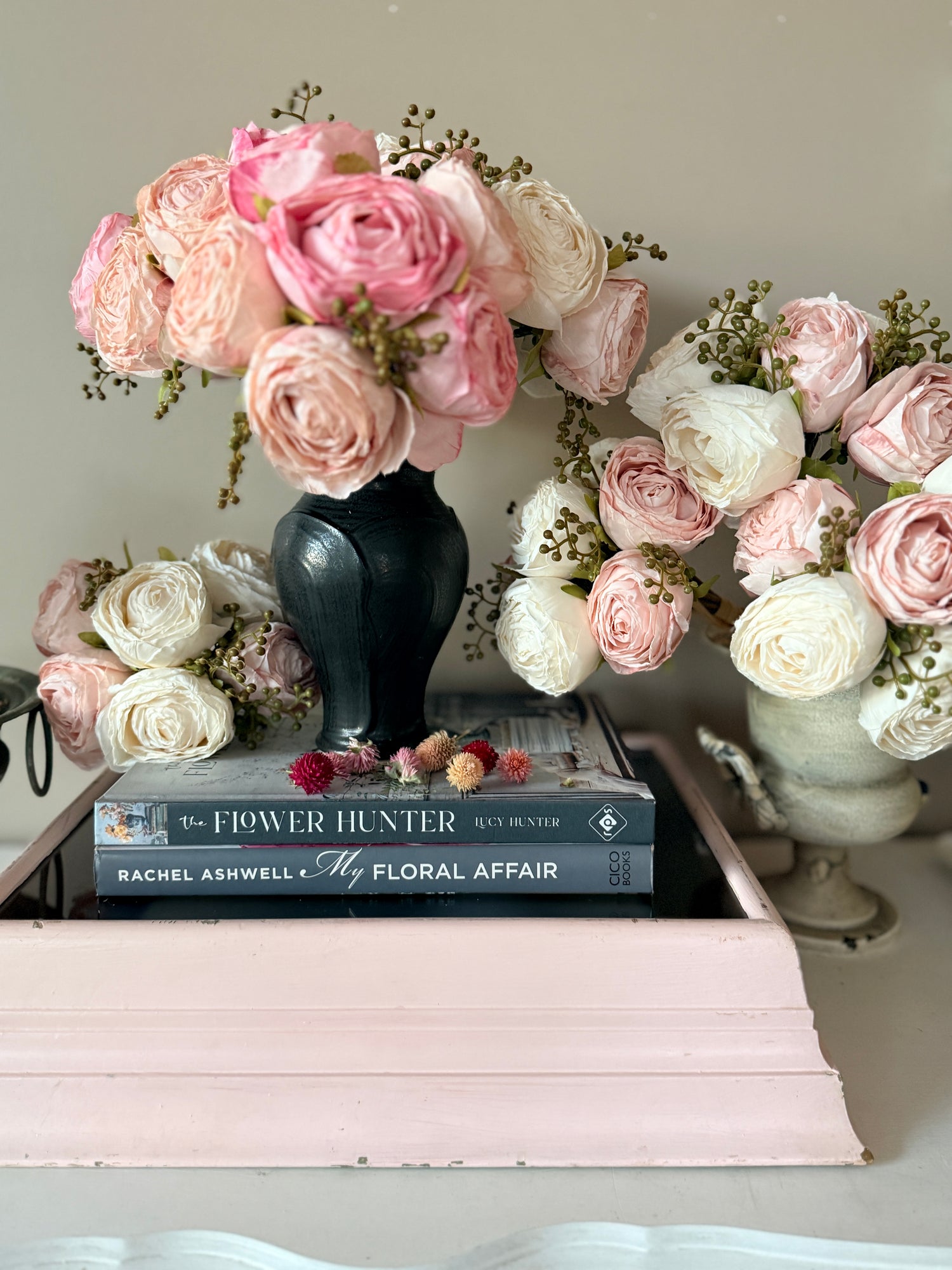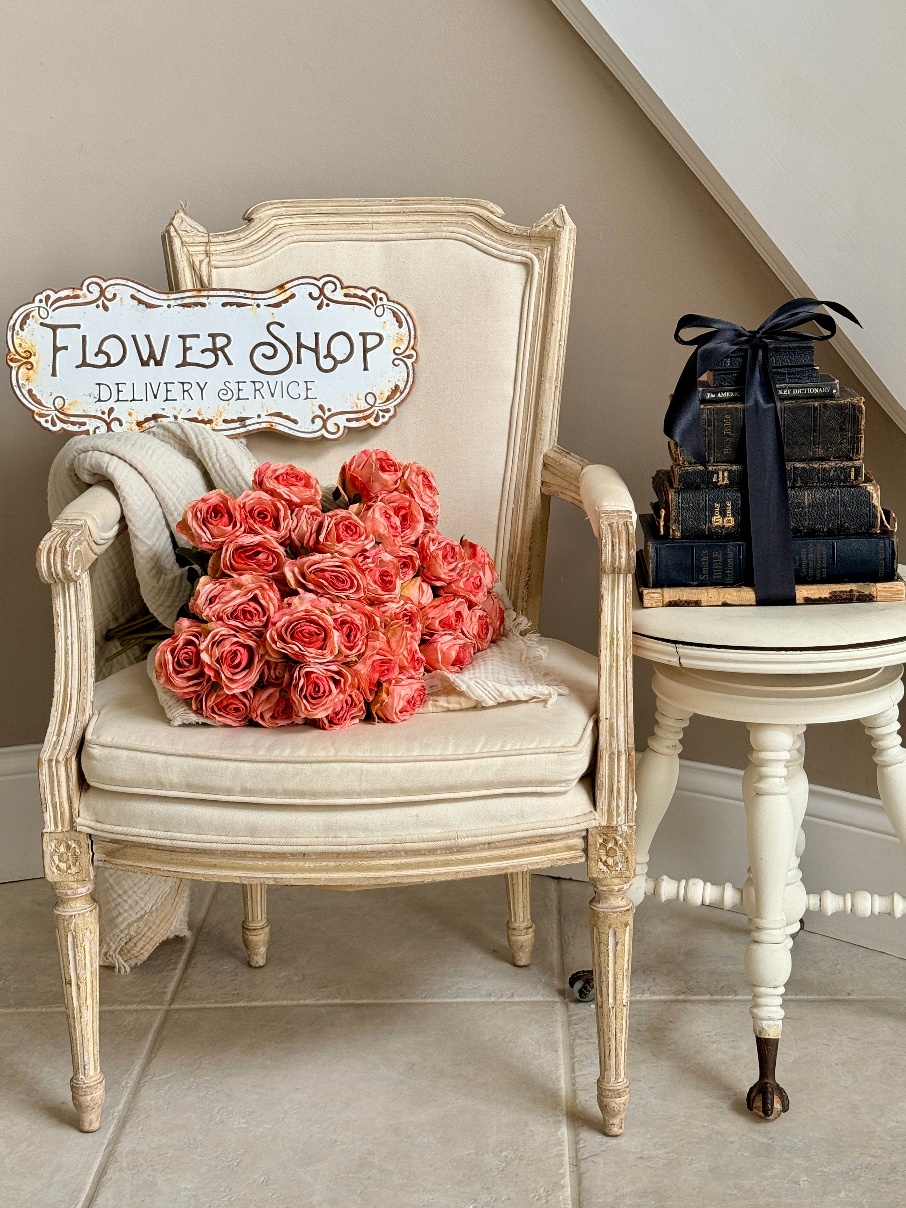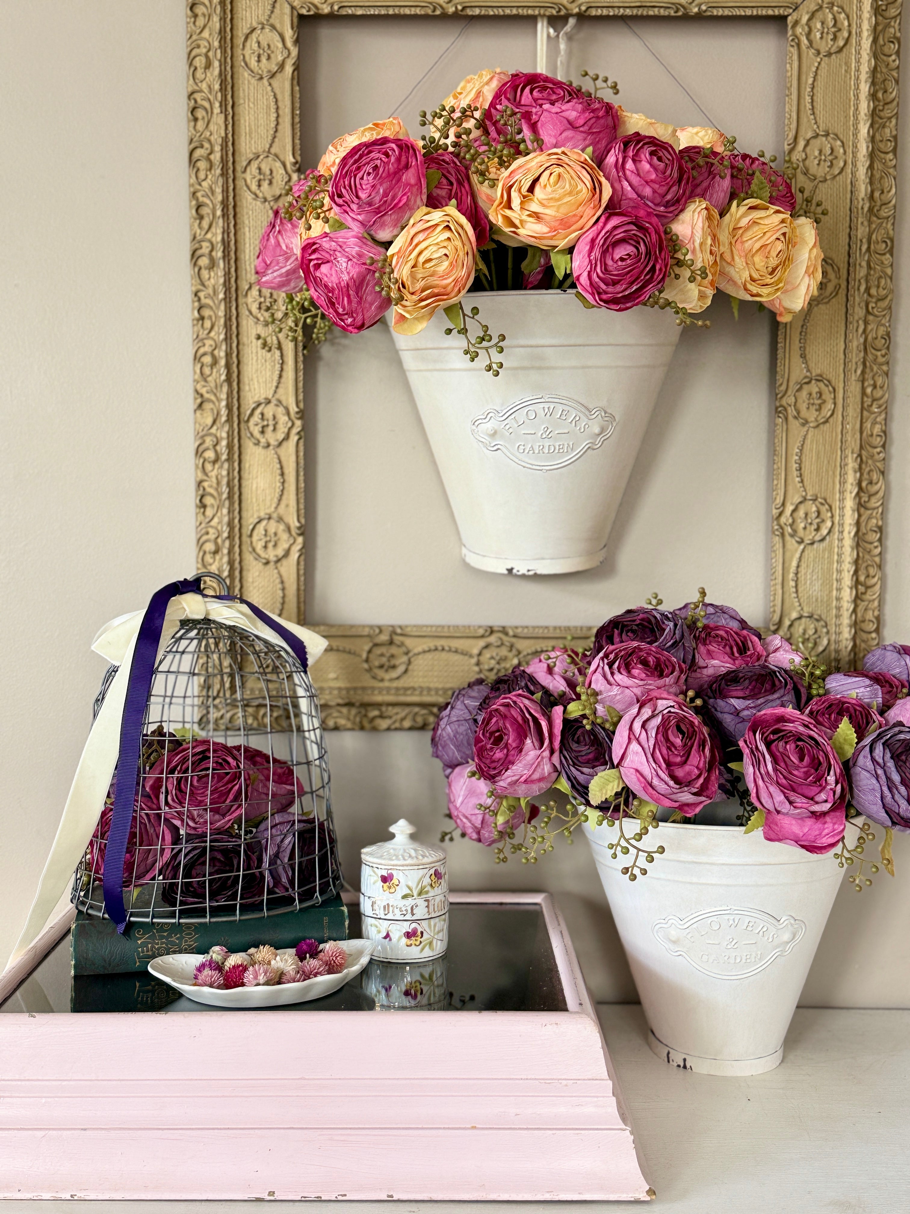 To welcome Spring, I’ve added some vintage inspired garden signs, wire cloches, faux florals, and new delightful candle scents.