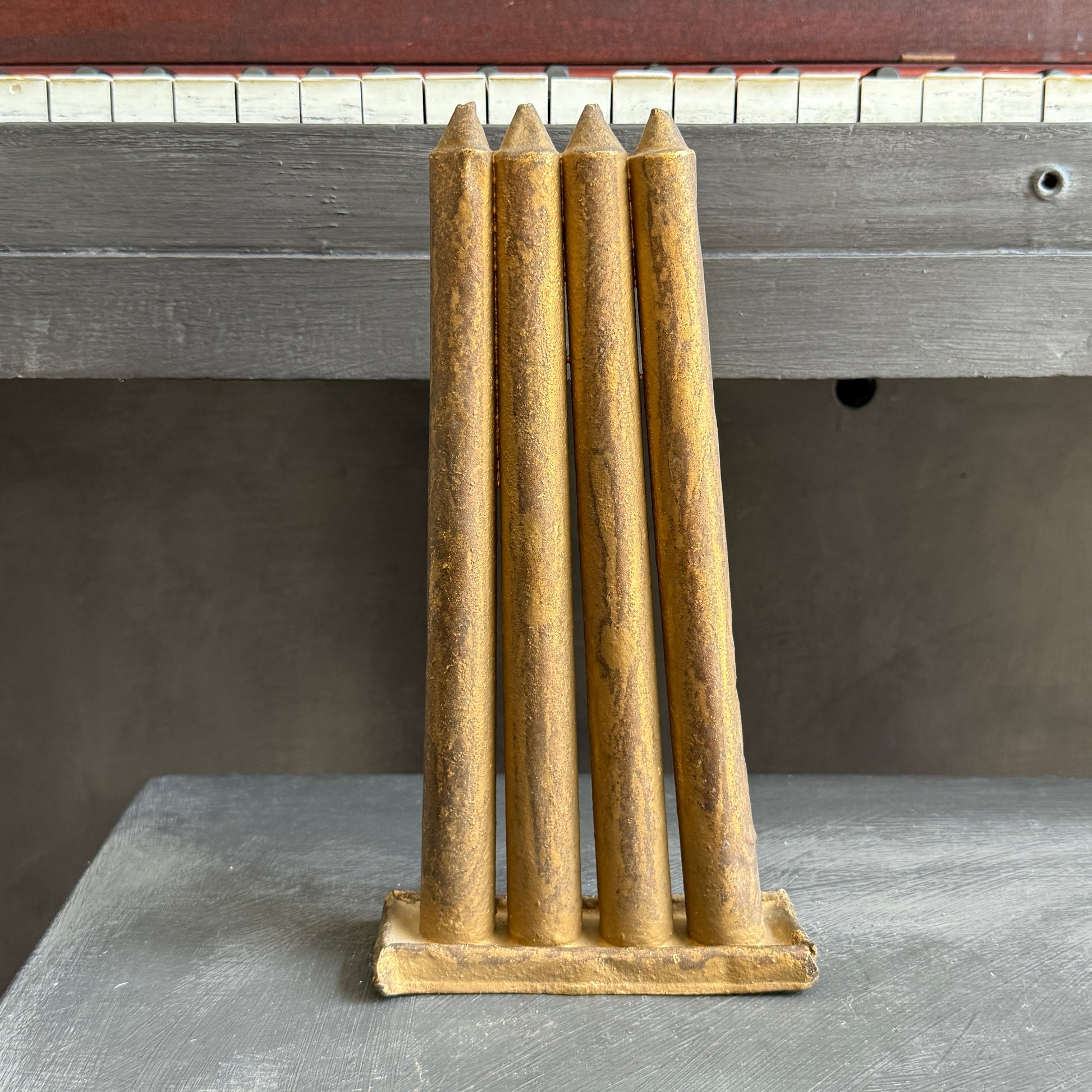 Metal candle mold mold with original gold paint. Makes a nice piece for display.