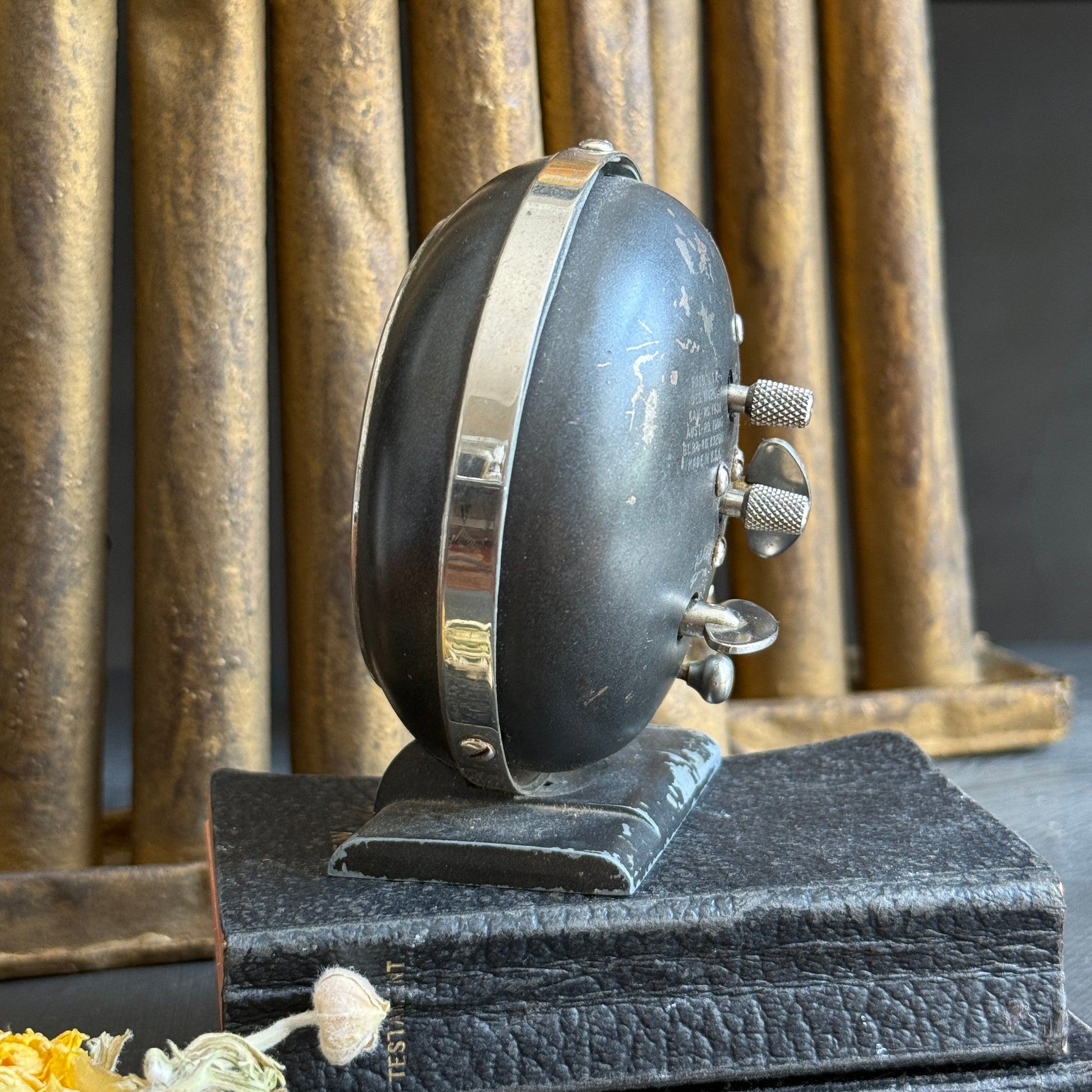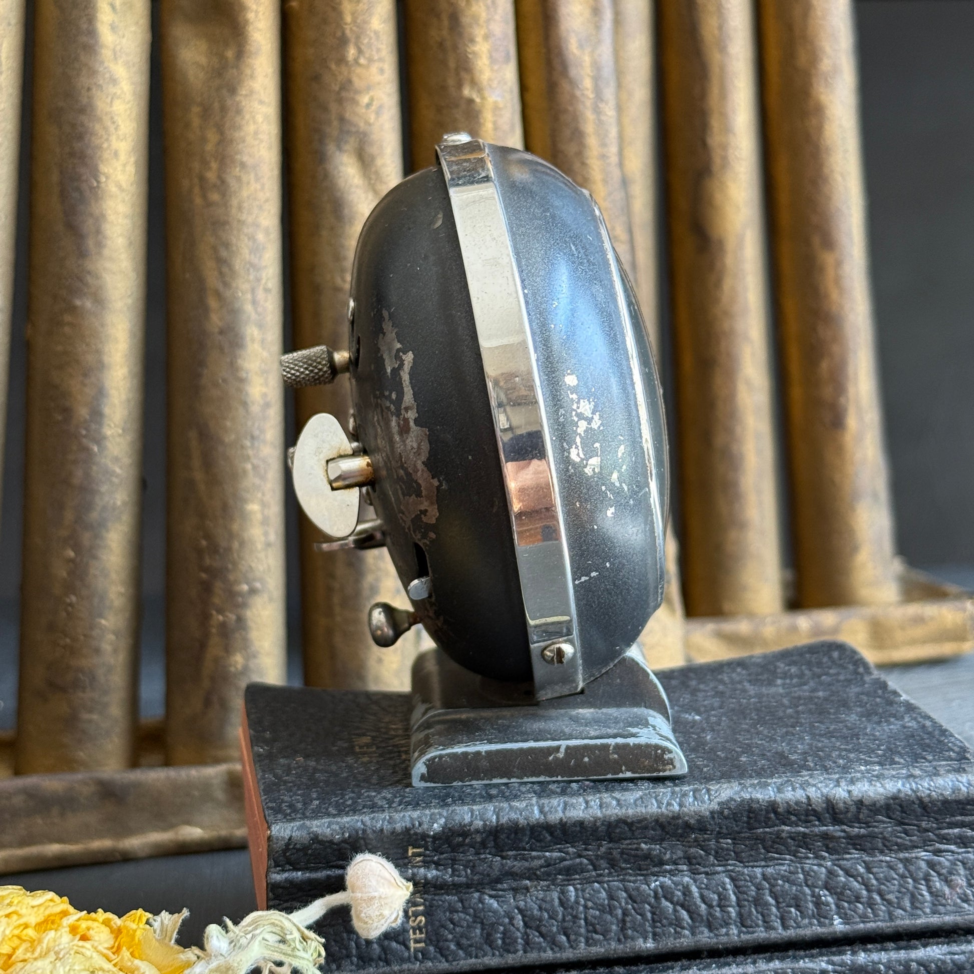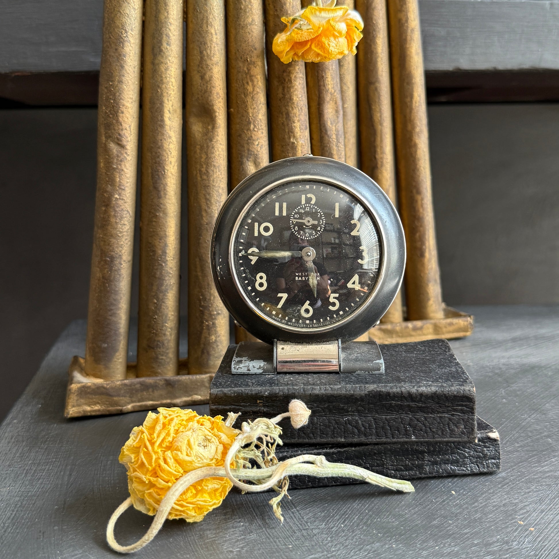 This classic Baby Ben alarm clock by Westclox features a gunmetal finish.
