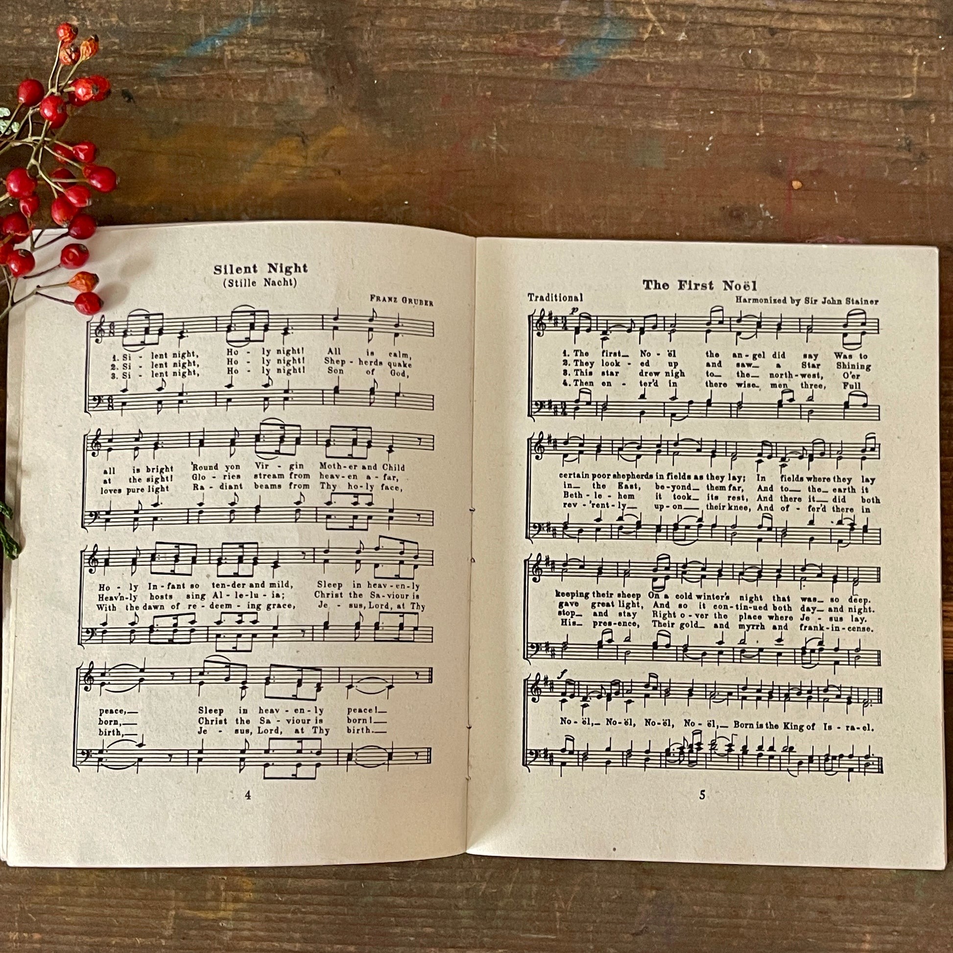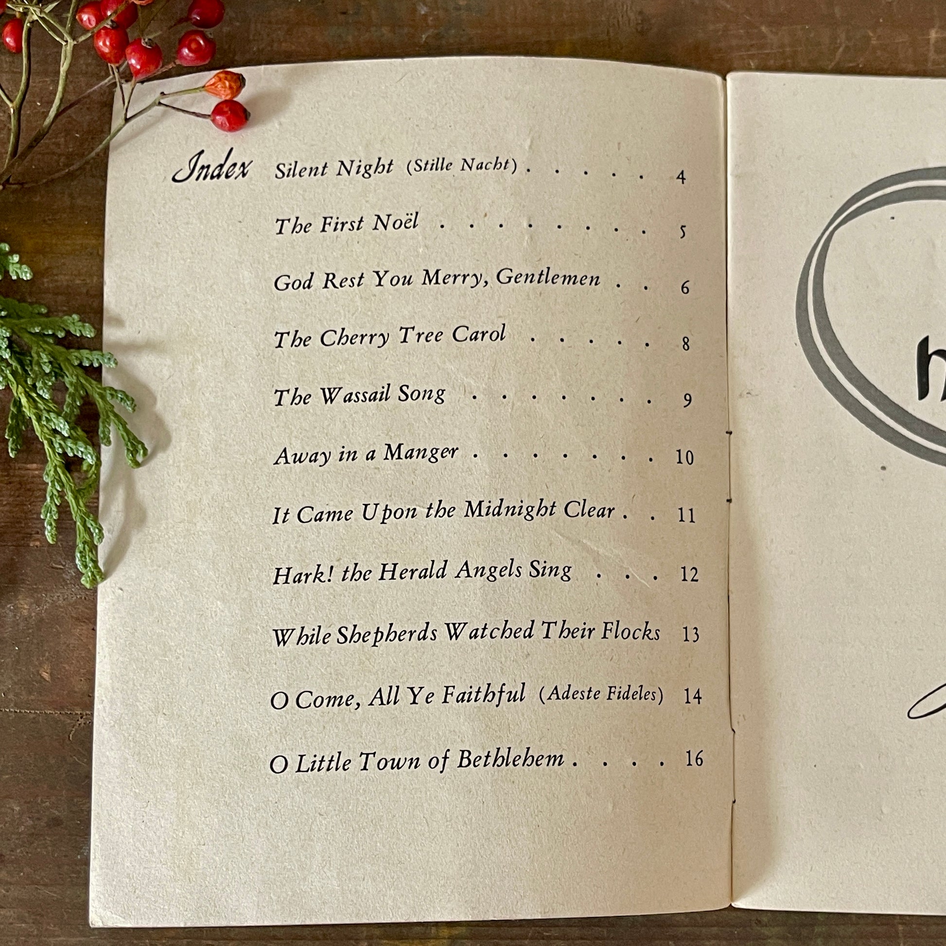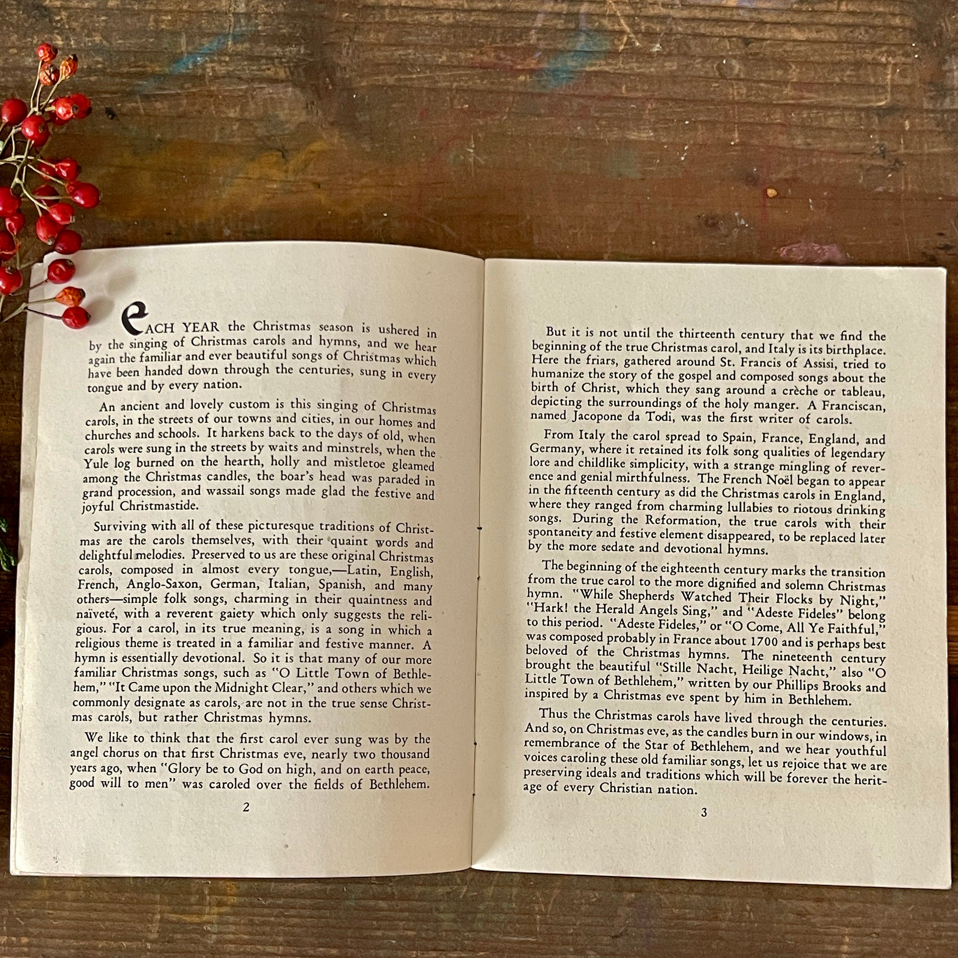 This booklet, presented by John Hancock Life Insurance Co., features a collection of 11 Christmas carols printed on 16 pages. The cover boasts a beautiful depiction of a colorful church, vibrant stained glass, and a wintery scene.