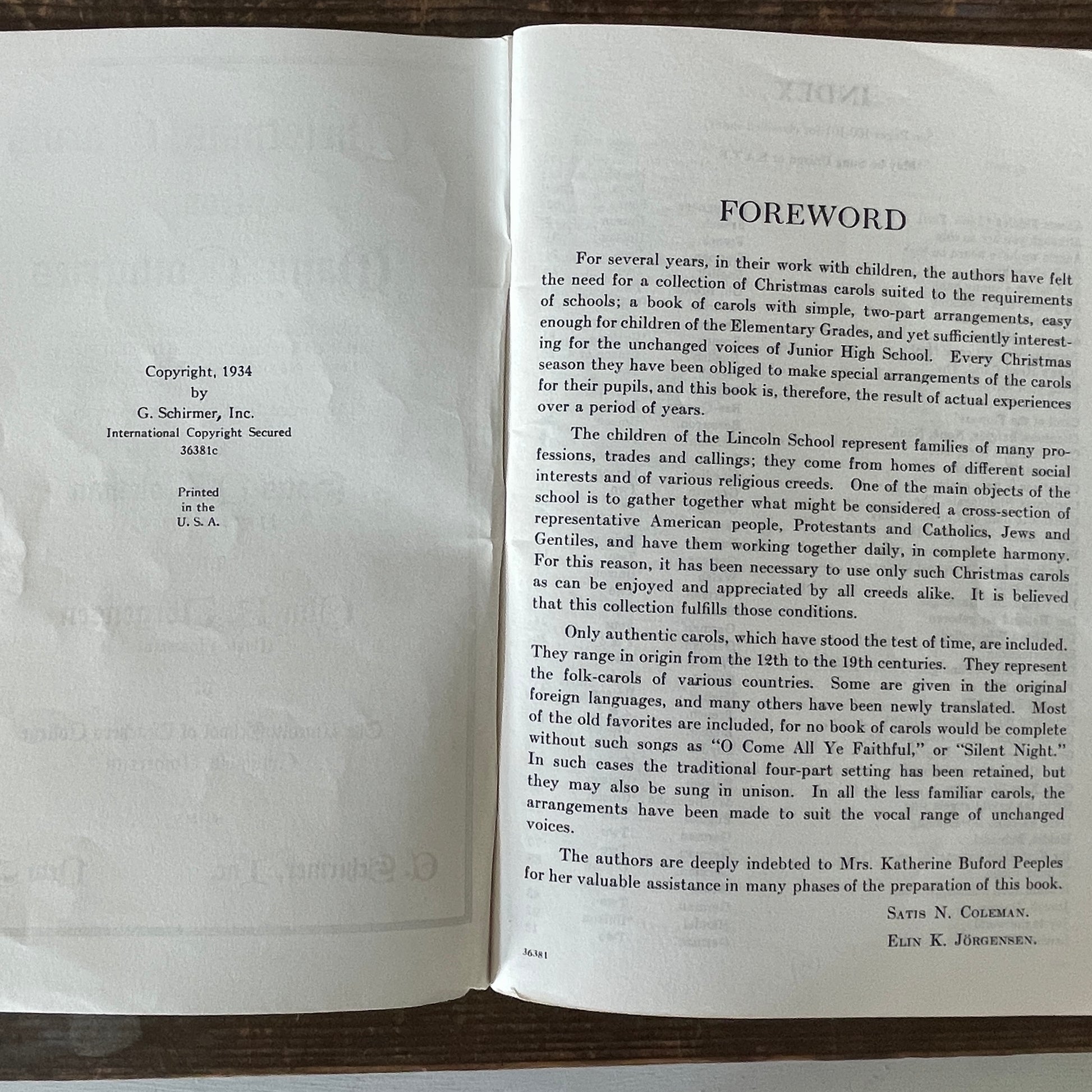 The Christmas Carols From Many Countries 1934 G. Schirmer Song Book is a comprehensive collection of authentic carols that originated from the 12th to 19th centuries for the use of Elementary and Junior High students. Published in 1934, this song book offers old favorites, familiar carols in original foreign languages.