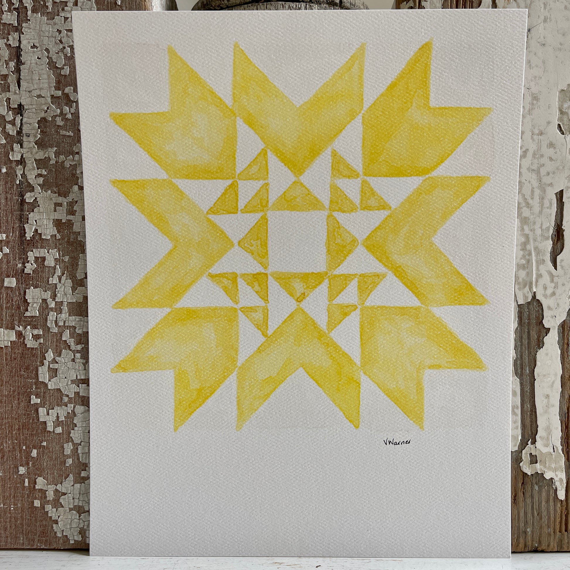This is an 8x10 Print of original watercolor artwork painted by Virginia Warner of Richlands, Virginia and adapted from Katie Baker's (Baker's Nest) popular Nordic Star Barn Quilt.