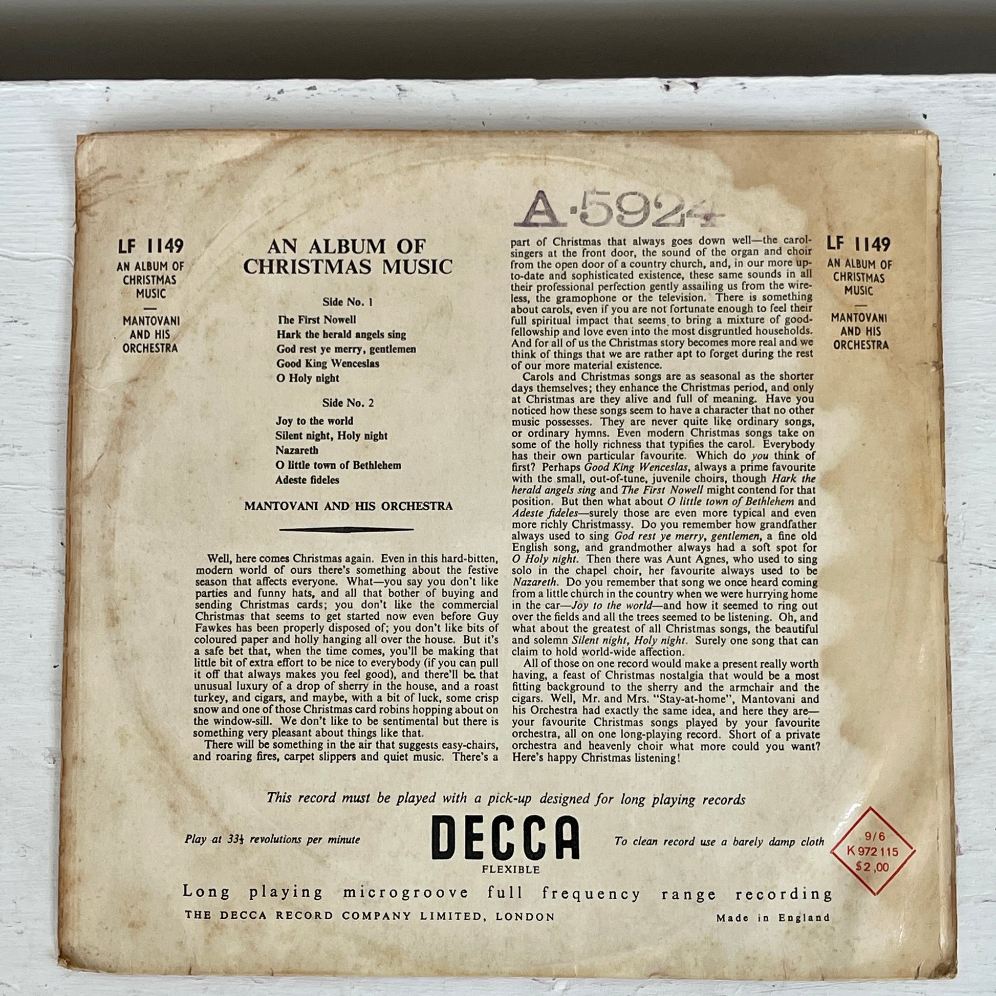 Mantovani and his Orchestra bring a classic vinyl Christmas Carol Album with a festive red album jacket. Perfect for your holiday decor!