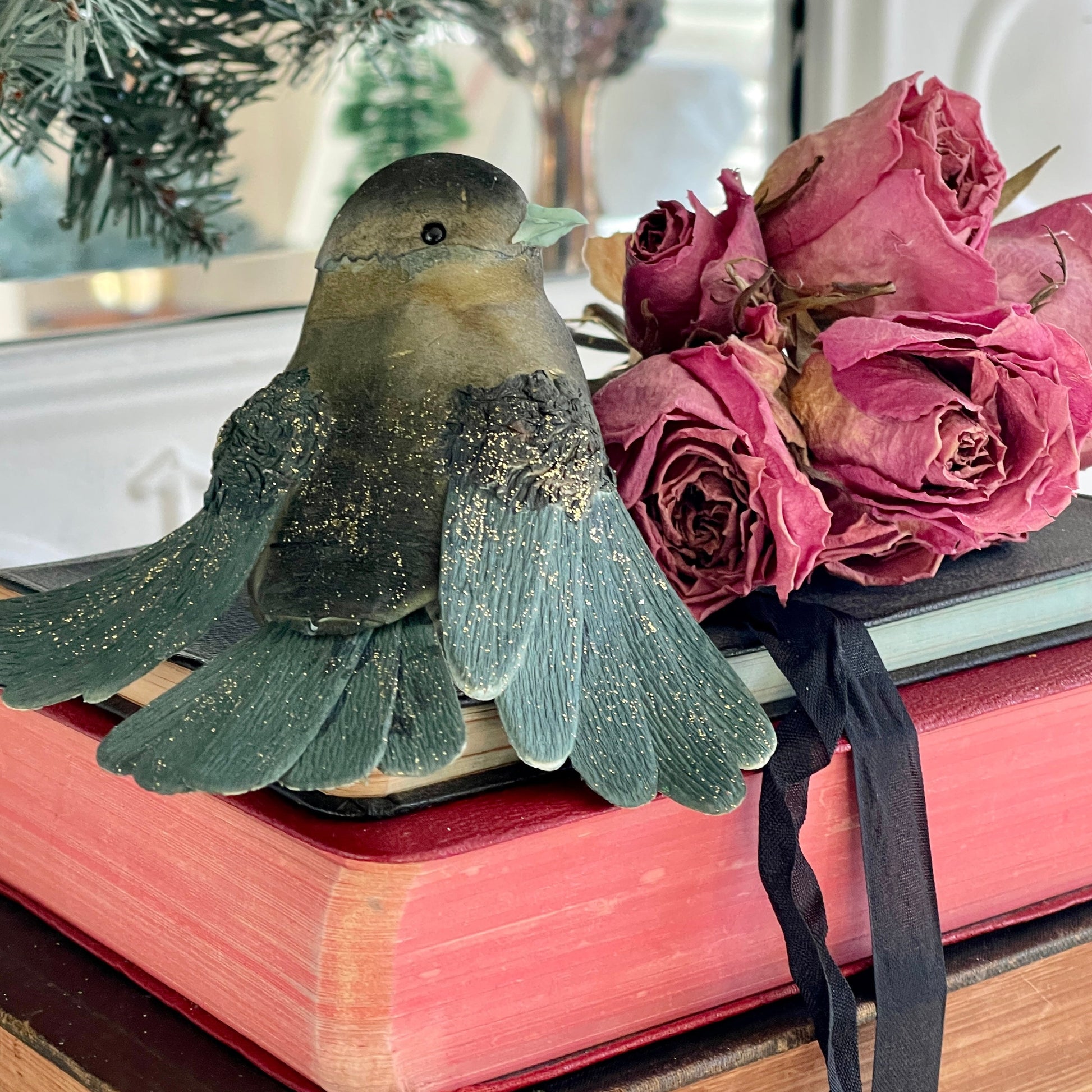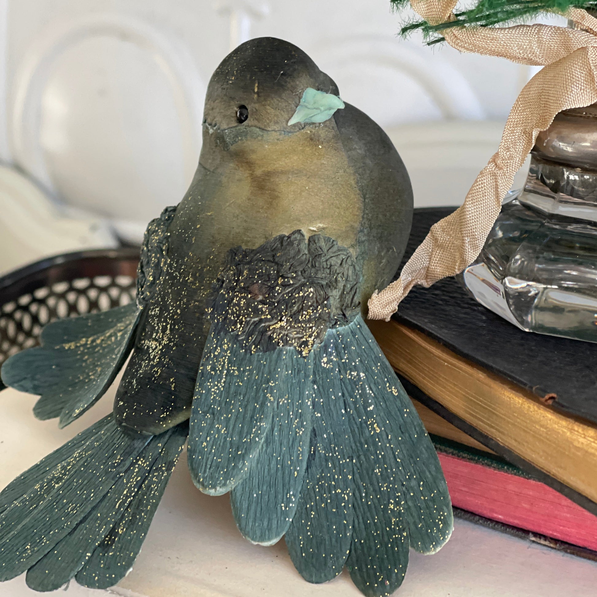 This darling Hunter Green bird will instantly add a festive atmosphere to any area. Crafted from cardboard and paper, the bird is elegantly painted green and decorated with sparkling glitter and black bead eyes.