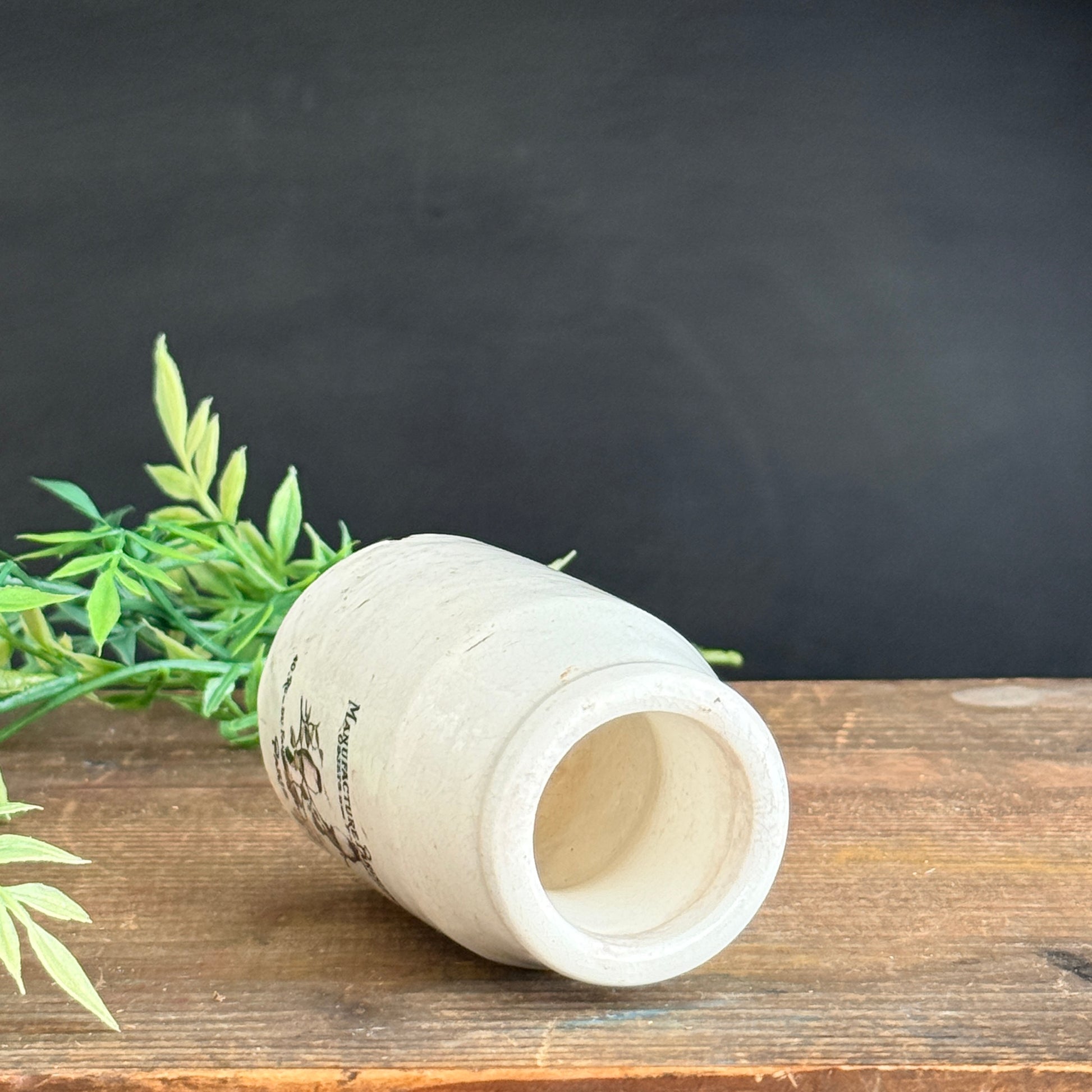 Antique Victorian pots that have been enhanced with beautiful, one-of-a-kind graphic images and typography. These are limited editions, graphics and pots are likely to change according to availability. Graphic is a permanent transfer that has been baked on to the pot.