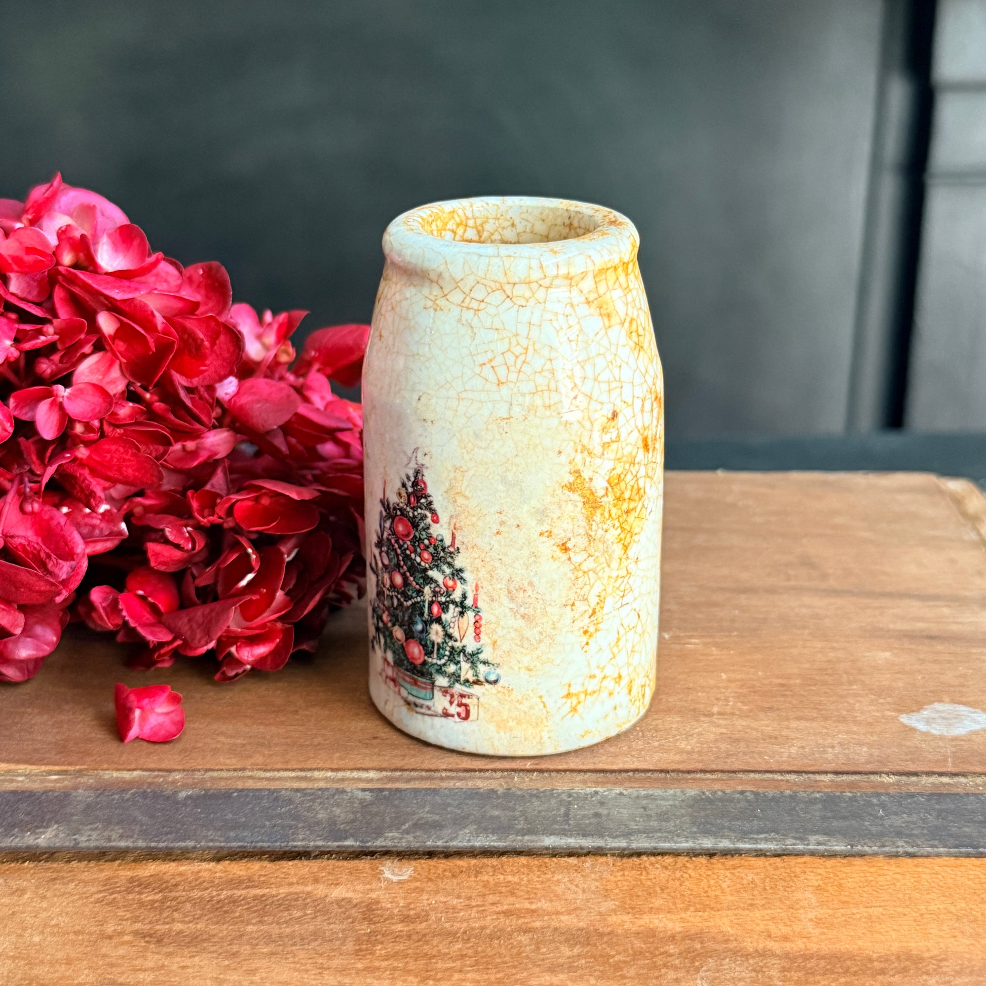 Antique Victorian pots that have been enhanced with beautiful, one-of-a-kind graphic images and typography. These are limited editions, graphics and pots are likely to change according to availability. Graphic is a permanent transfer that has been baked on to the pot.