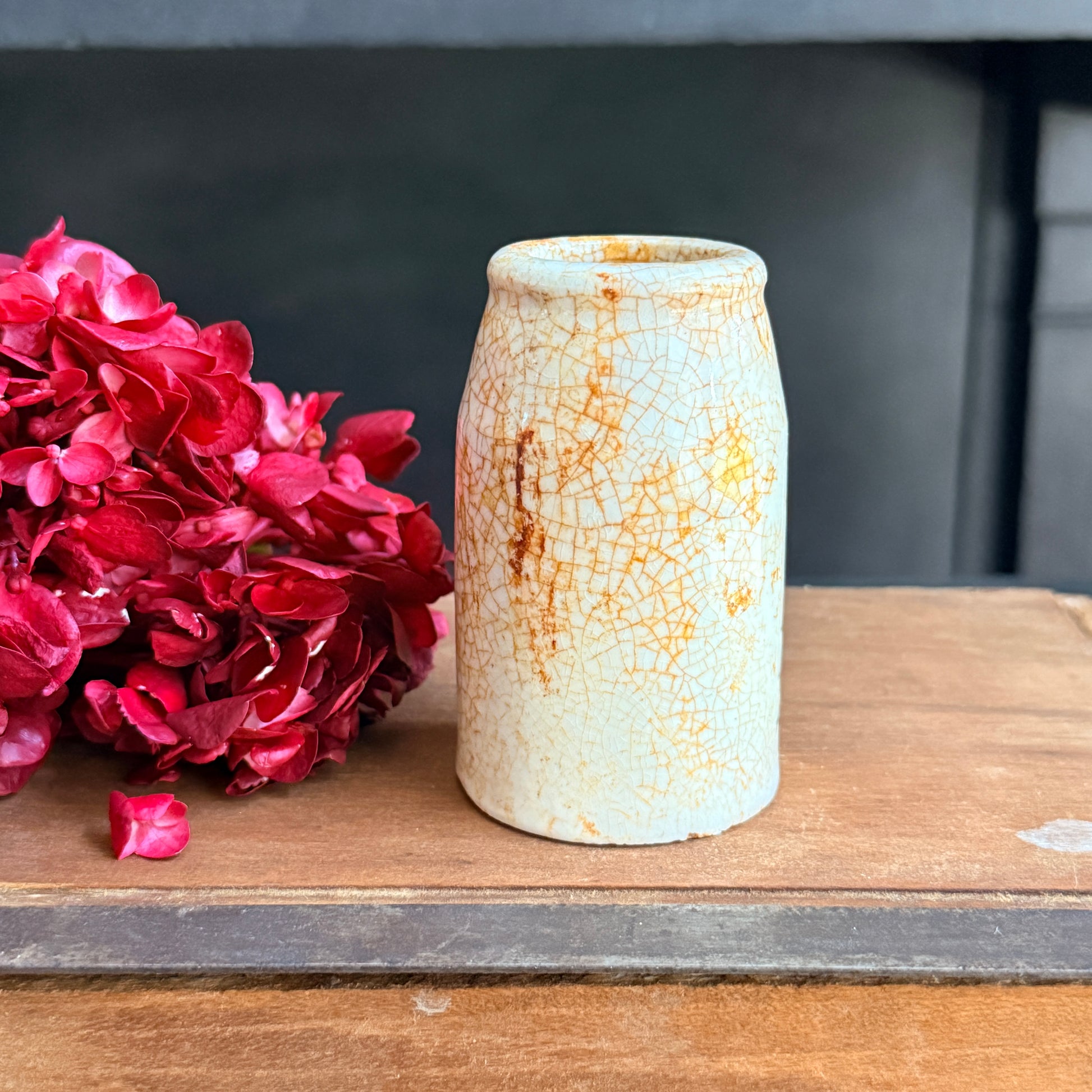 Beautiful antique Ironstone dairy crock with rust crazing and staining. This is authentic Victorian Pottery and it has been enhanced with a new graphic appliqué.