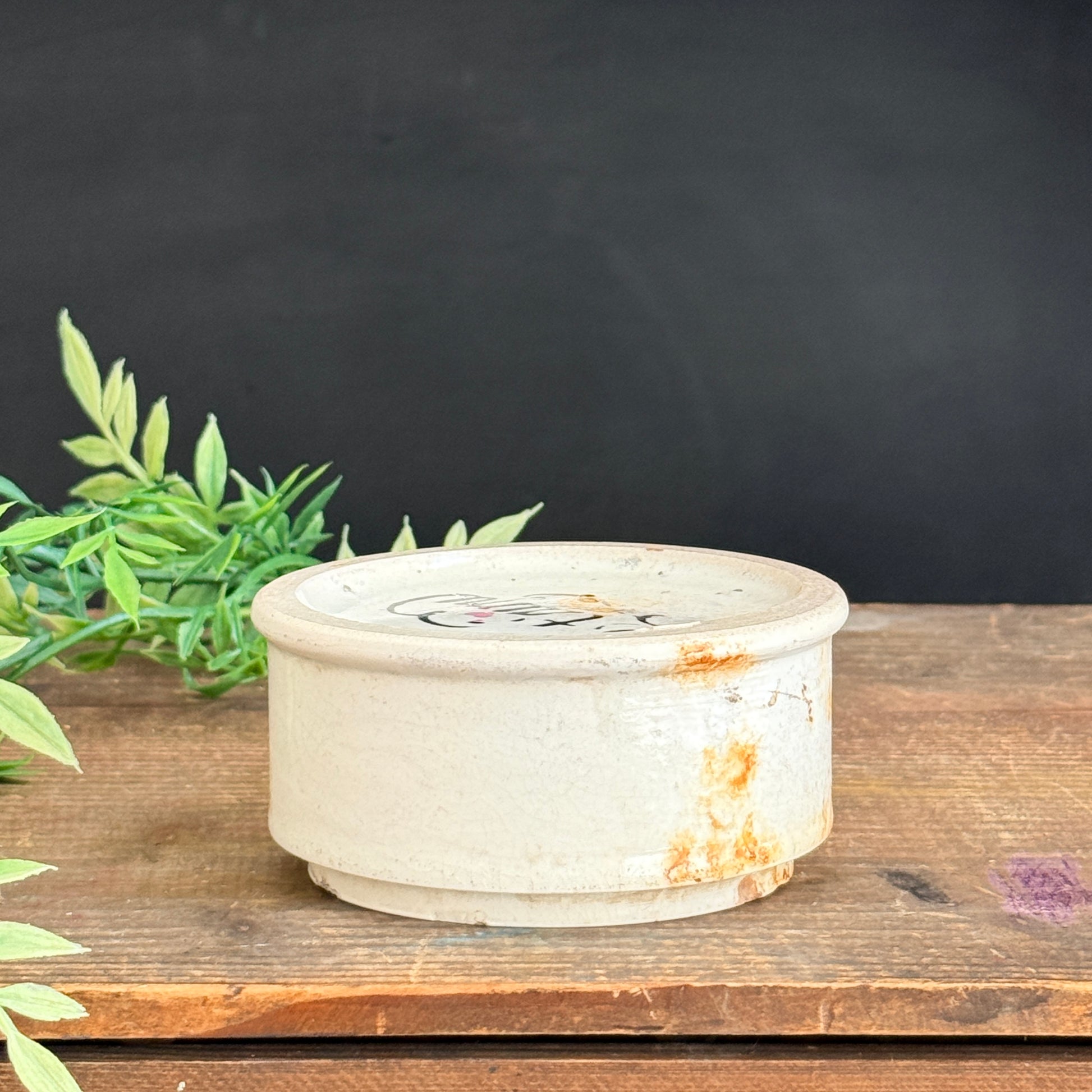 Antique ironstone riser with beautiful character. It has been adorned with a new graphic appliqué design.