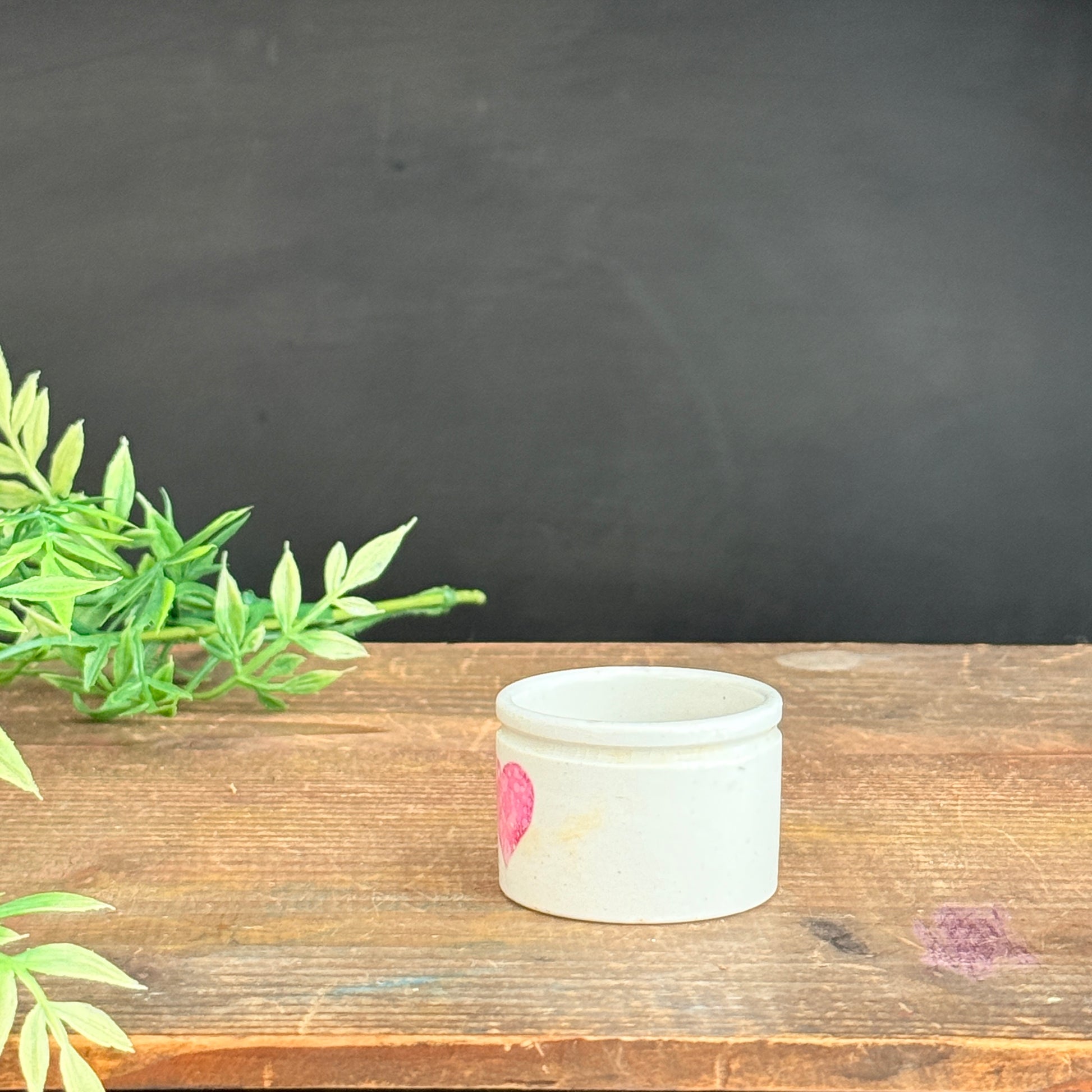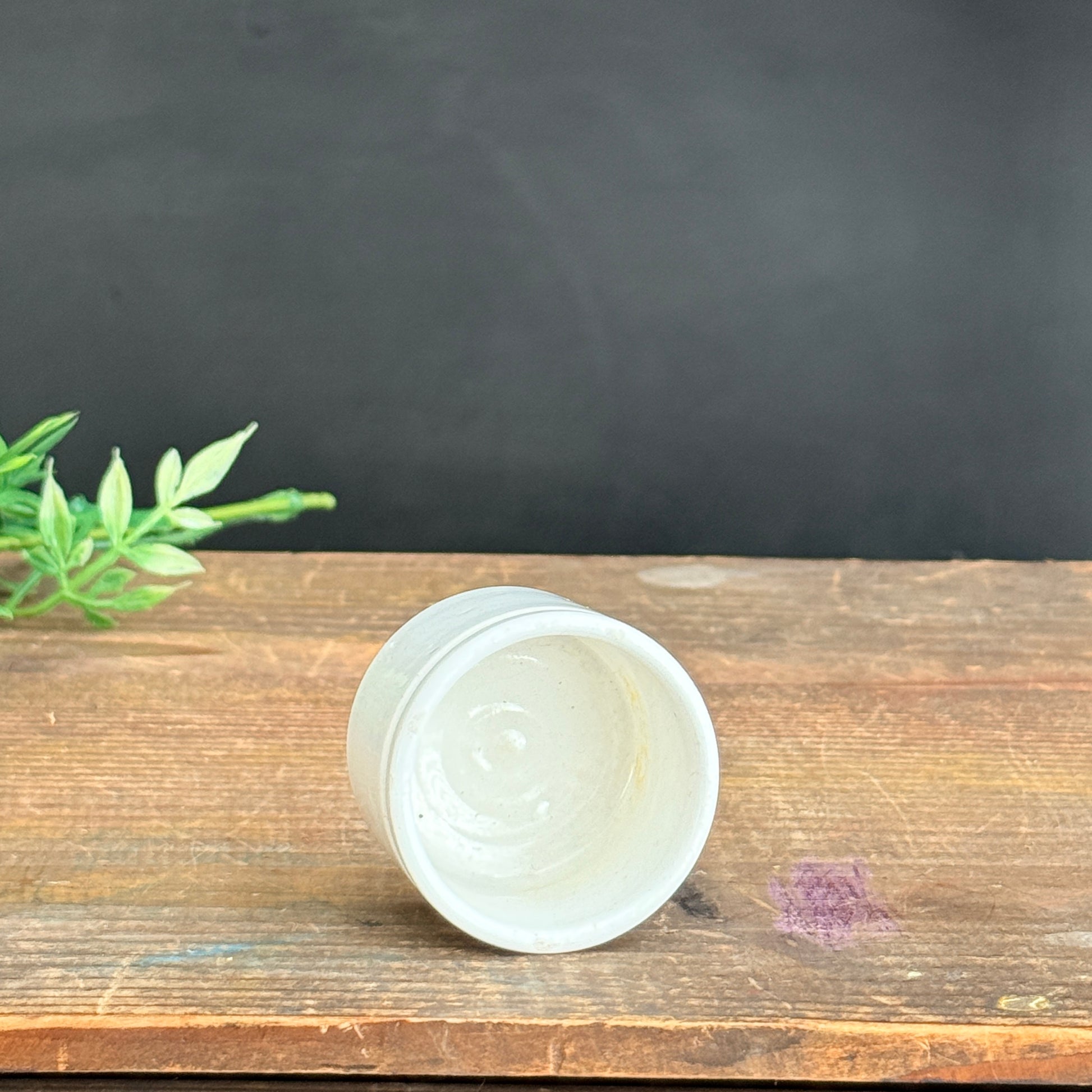 Antique ironstone tiny pot It has been adorned with a new graphic appliqué design.
