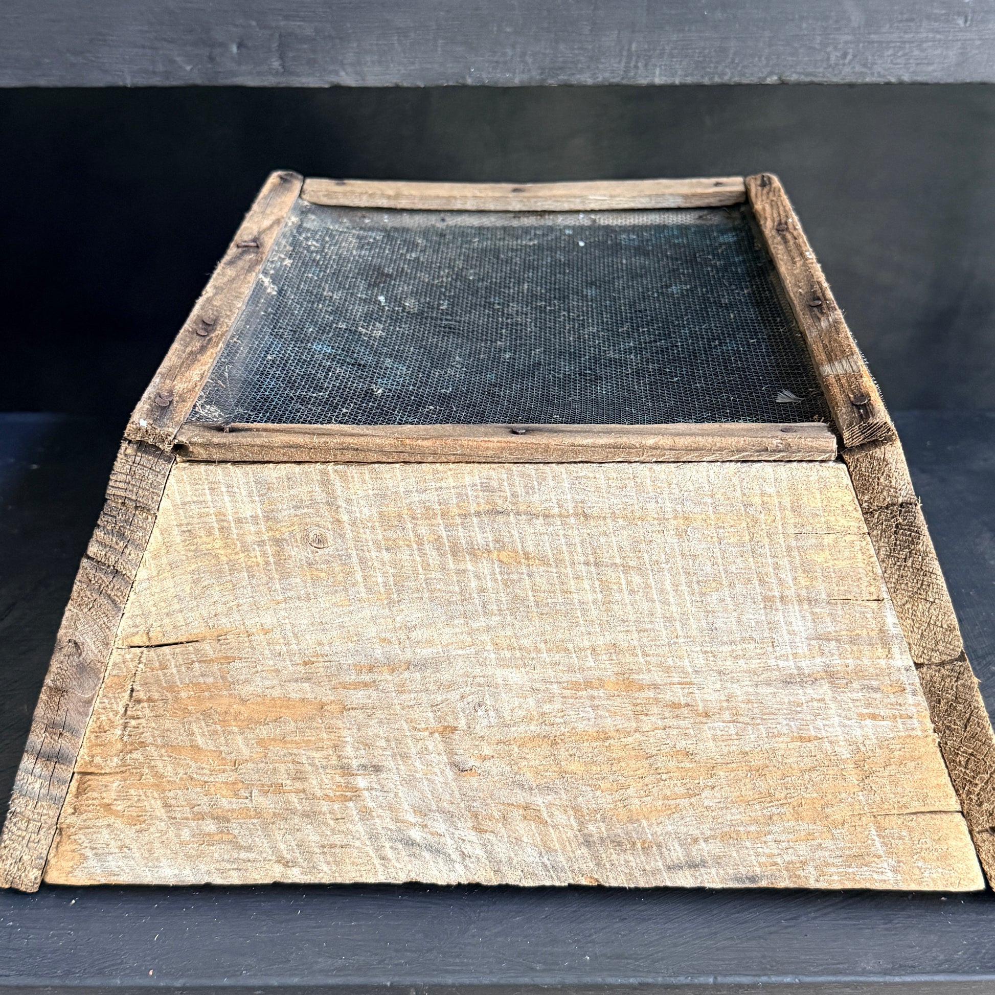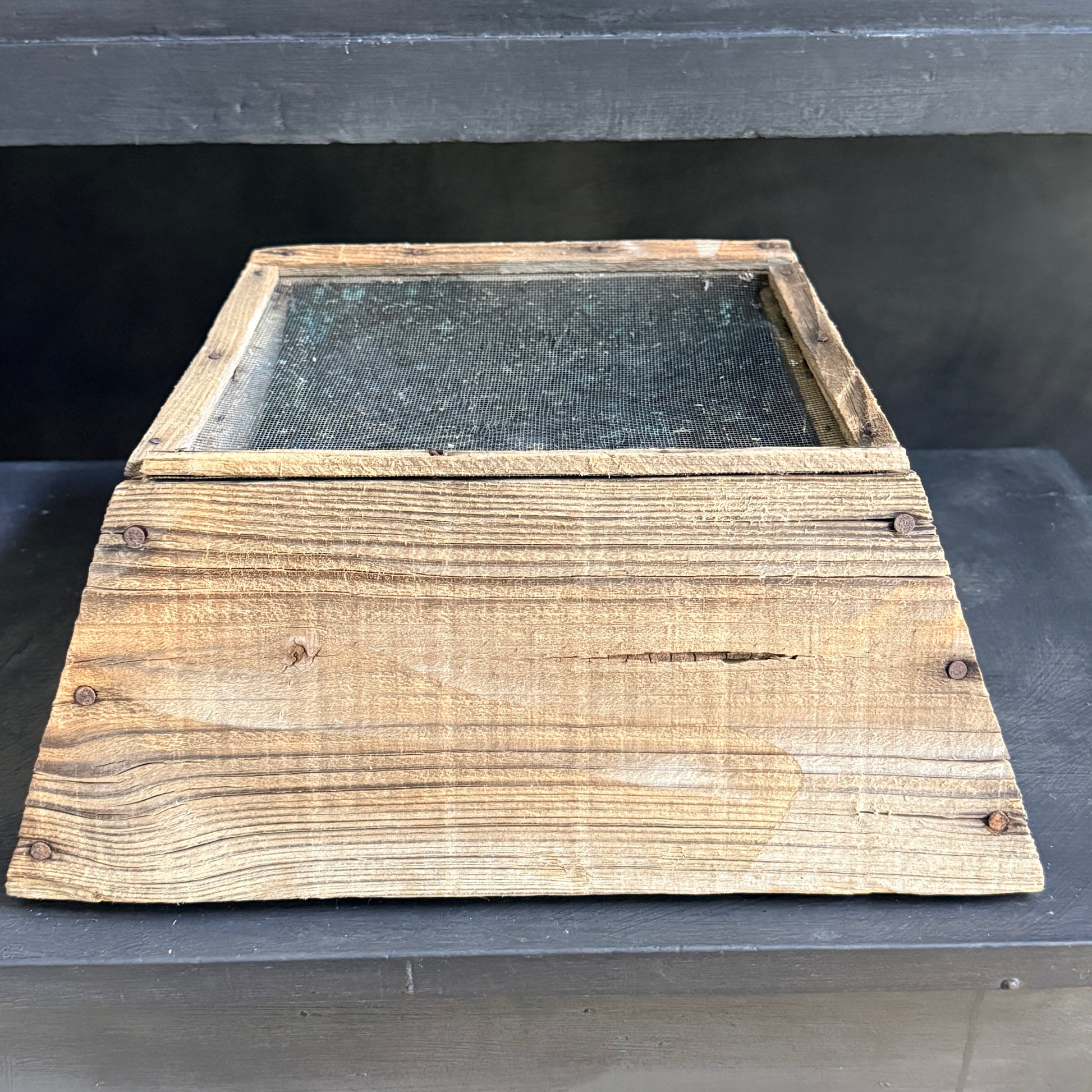 Primitive handmade wooden garden cloche. This was made by farmers to protect their plants from frost. The cloche was placed over top of the plant. It was constructed of wood and a screen.