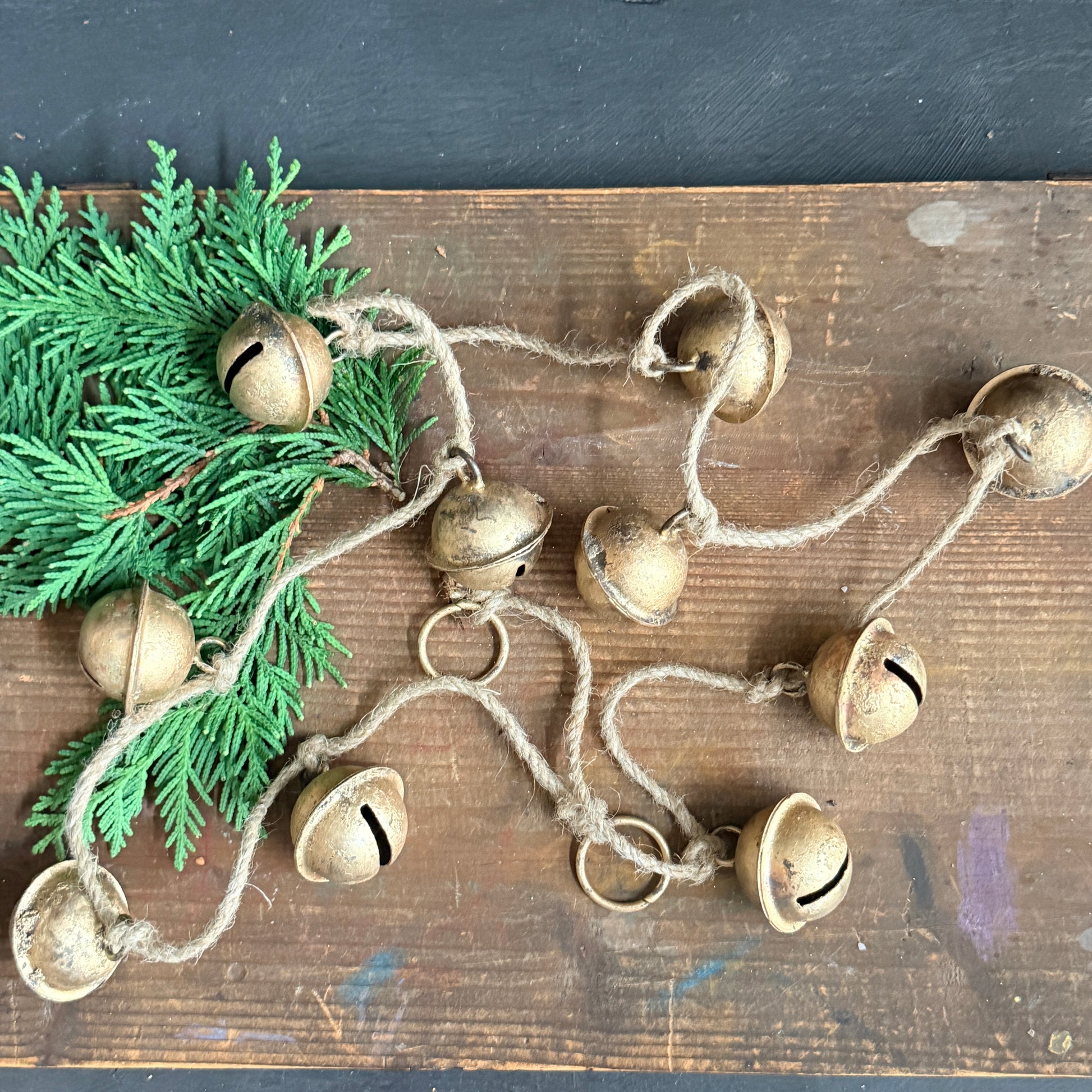 Antiqued brass bells lend a gentle shimmer and rustic air to holiday decor. New decor item.