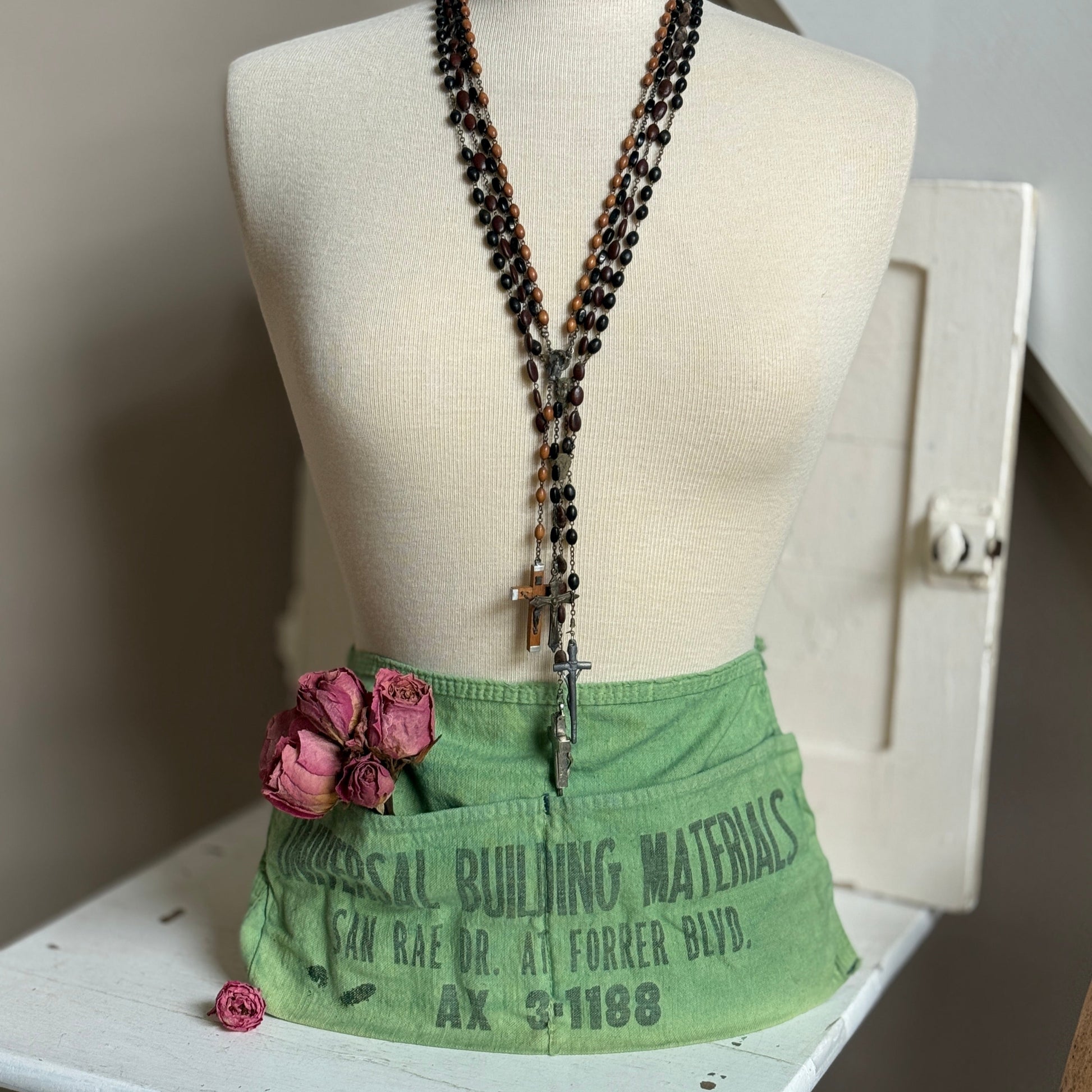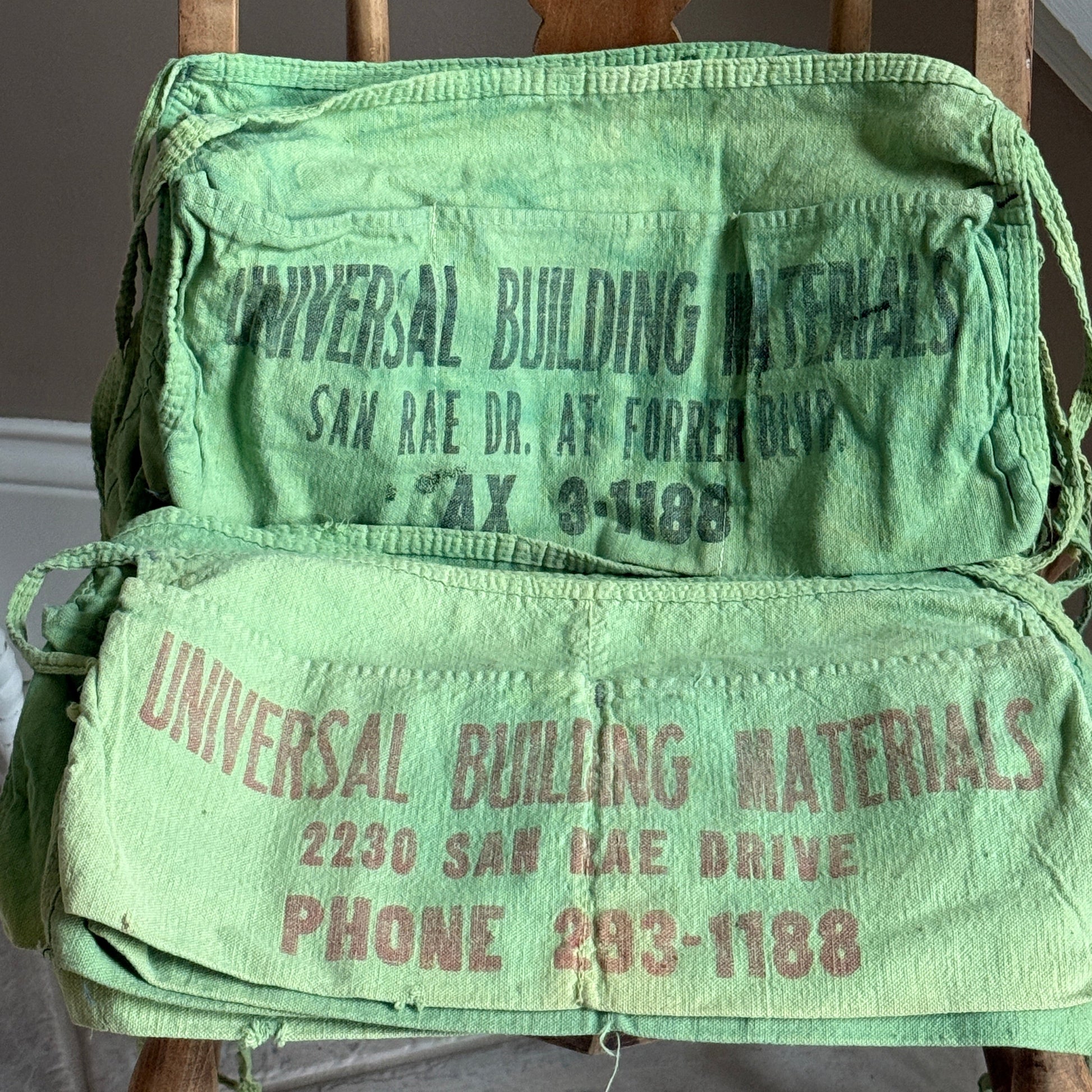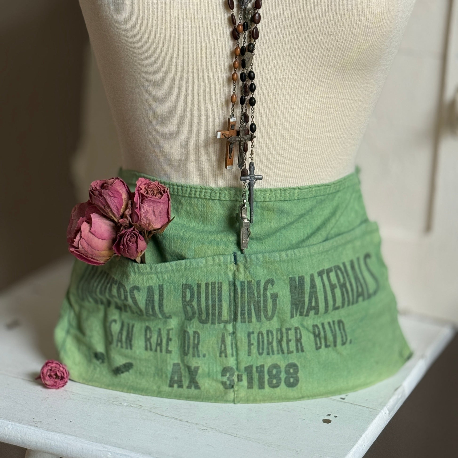 Please note: some aprons have areas of paint splotches and wear along seams as well as frayed strings. Some strings have broken off and are shorter on one side than the other.