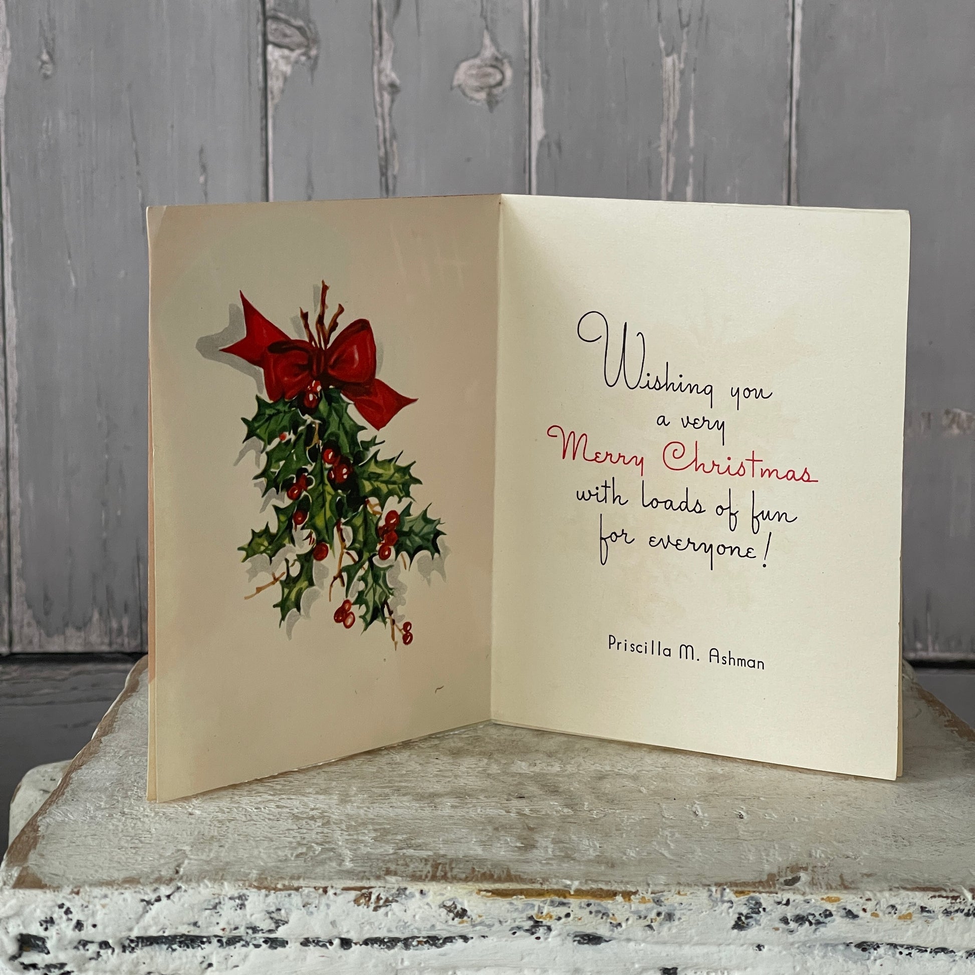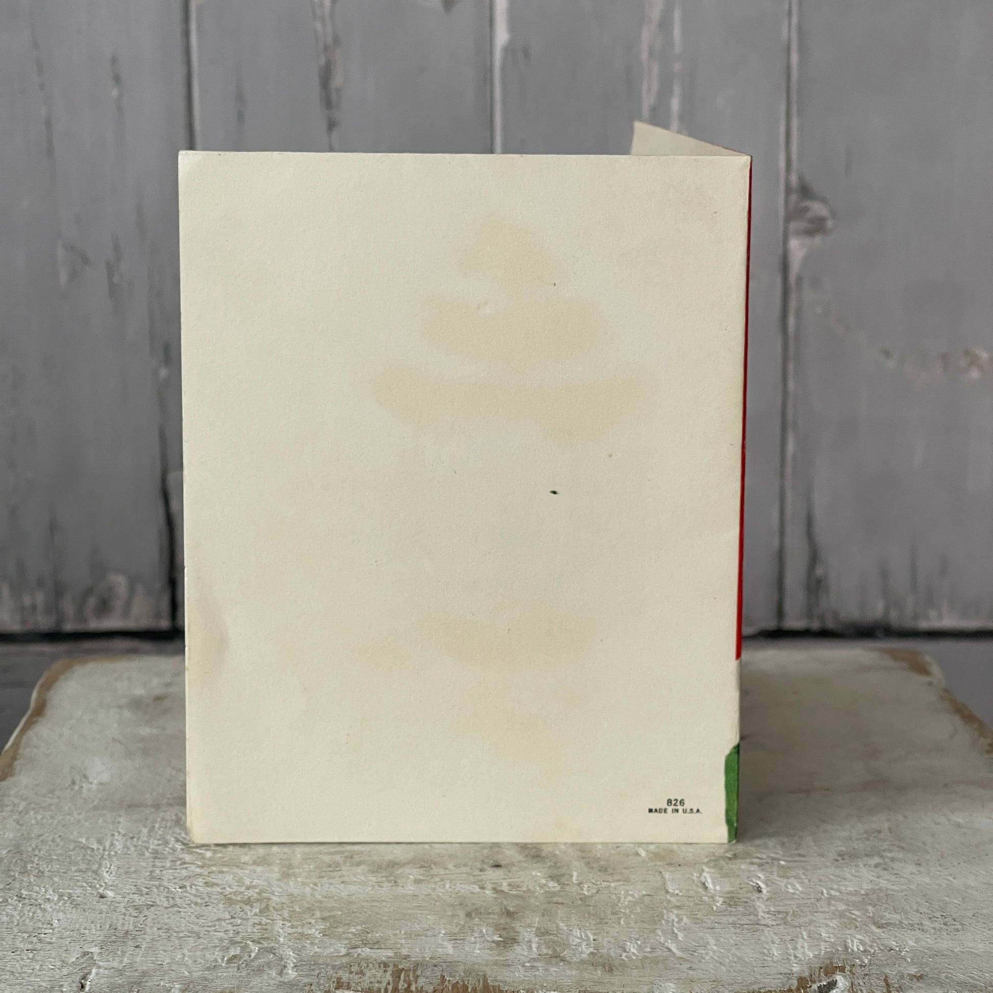 This vintage Christmas greeting card is both adorable and unique. Crafted from folded paper, it showcases a charming Snowman design with vivid colors. Made in the USA.